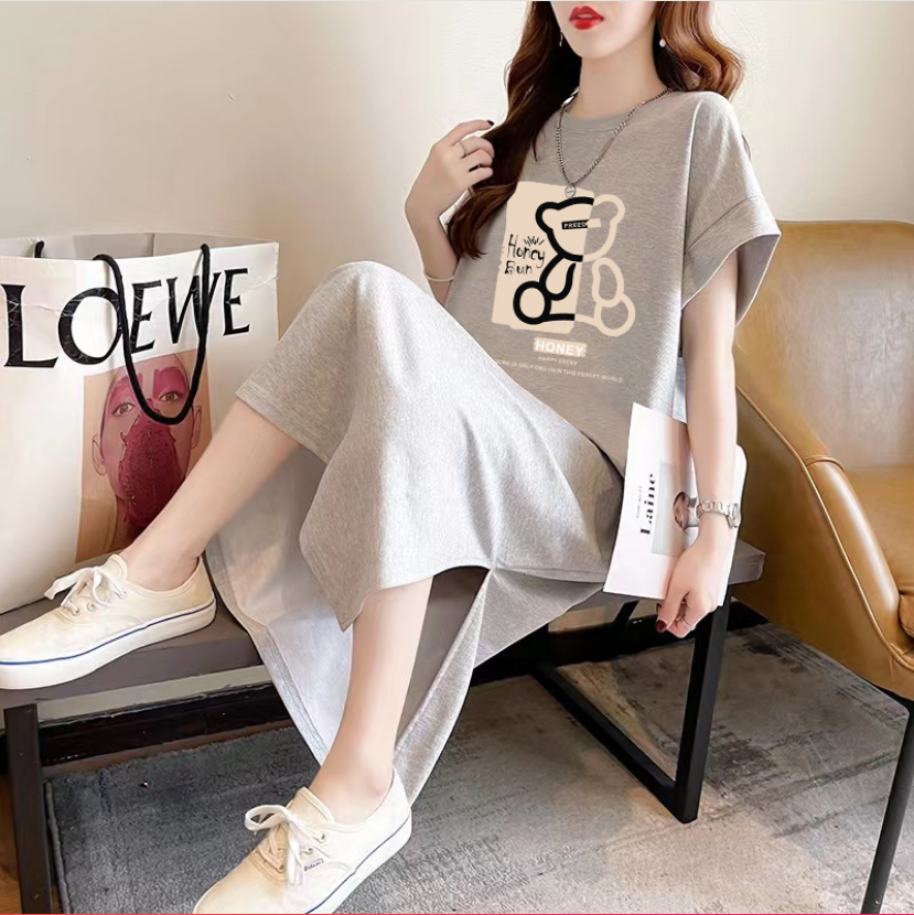 慵懒风短袖t恤裙女夏季休闲宽松过膝长裙纯棉长款连衣裙大码女装